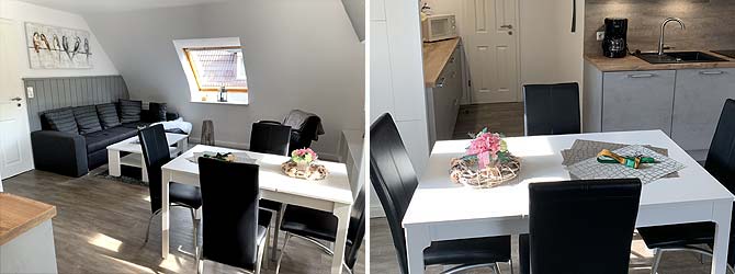 3-Raum-Wohnung mit 85 qm Grundfläche, bestehend aus einem Wohnraum, Küche mit Essraum, 2 Schlafräumen, großes Bad mit Badewanne und Dusche, Geschirrspüler, Waschmaschine. Überdachte Terrasse mit Gartenmöbel. Anmietung: bis 4 Personen.