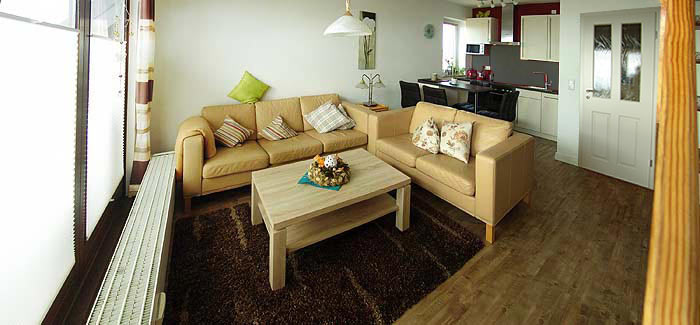 Balkon mit Gartenmöbel, bestehend aus einem Wohnraum, DVD/Blue Ray, neuer Küche mit Geschirrspüler und Mikrowelle, W-LAN,